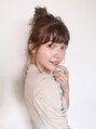 コテでざっくり巻いた後にゆるくお団子でまとめました【気に入ったスタイルは「ブックマークする」ボタンを押して、ご来店時ご提示ください】ミルクティーピンク,アッシュブルー,チェリーピンク,ホワイトミルクティー,グレージュカラー,アッシュブラック
