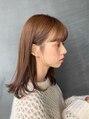 肩で跳ねるミディアムヘア♪ズボラな方おすすめの楽チンヘアです^^ぱっつん前髪でも顔が大きくならないように【もみれ毛】を使っているのがポイント◎耳にかけても可愛い…!暖かめのウォームベージュはイエベの方ピッタリ!