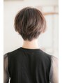 前下がりのバングなしショートにワンカールニュアンスパーマで甘辛に。カラーは肌を美しく見せる赤みのブラウン。