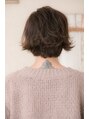 クールやキツくなりがちなノーバングをパーマと外ハネで、可愛い×若々しく元気なスタイルに。カラーはオリーブベージュで、透け感が羽根のように軽やか。