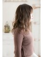 胸上のローレイヤーに、内・外ミックスのパーマを。頬を包み込むようにかけるので輪郭もカバーしてくれる。カラーはマロンベージュで、ツヤ感と柔らかさも同時に演出
