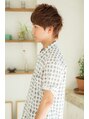 前髪は重めに残しマッシュの質感を強調しトップはレイヤーをいれ、軽さと重さをだしました。前髪の重さと、全体の無造作な質感でメリハリをつけました。