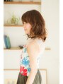 鎖骨下のワンレンベースでカットし、表面にローレイヤーをいれ前髪は流し、ランダムにカールをつけふわっとした質感を残しつつ、程良い束感も残しました。