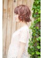 くびれフォルムで健康的な雰囲気をアピール。パーマで動きをつけ機微元はスッキリ見えるので小顔に。バングも軽めに作り抜け感もプラスしました。