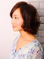 落ち着いたカラーのボブベースに毛先にかけてアトランダムなカールをプラス!流すバングで大人っぽさを出しています。大人カジュアルスタイルです