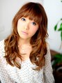 明るめの髪色に緩く纏うフェミニンなカールをつけたスタイルです。前髪にも大きいカールを加えることで全体のバランスが良くなります!