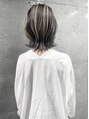 外ハネのボブスタイルに、ホワイト系のハイライトをしっかり入れたエッジーなデザインです★単調なボブデザインに、スパイシーなアクセントを!カジュアルにも、エッジーにも、ファッションにも合わせやすいオシャレなカラーデザインです!