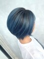 丸みショート/バレイヤージュ/ブルー/青