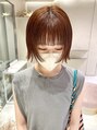 ブリーチなしでオレンジカラー。カットは切りっぱなしボブひ顔まわりに少しレイヤーをオン。こなれ感のあるボブスタイル。