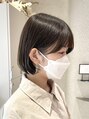 顎ラインに設定しやや前下がりのミニボブ。アイロンを使わなくても自然にまとまる長さで設定しています。耳掛けも可愛いです。カラーは7レベルのグレージュ。暗すぎず、透明感の感じれる明るさです(^^)