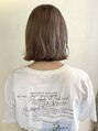 ブリーチ1回でできる柔らかベージュカラー。少しくすませてまろやかな質感に。切りっぱなしボブでも動きのあるスタイリングで抜け感を!