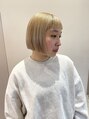 ぷつっと切ったミニボブにブロンドヘアー。ブリーチ2回からできます!イエベ、ブルベの方どちらもお似合いのカラーです!
