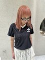ブリーチ2回ベースで作るピンクオレンジカラー。パールトーンで色落ちもブロンドヘアに!カットはぷつっとラインのでる切りっぱなしロブカット。
