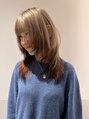 2ブリーチベースのデザインカラー。明るめベージュに毛先をオレンジとブラックでメリハリを!カットはレイヤーをたくさん入れてゆるっと巻いてもおしゃれに動きがたくさんでるように!