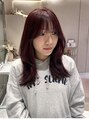ブリーチなしで作るカシスレッドカラー。このカラーは【ブリーチなしダブルカラー】のメニューで明るめのカシスレッドにしています!カットは顔周りきレイヤーを入れて軽く巻いてくびれヘアを作れるようにカットしてます!