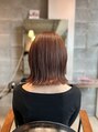 肩ではねるボブ。カラーは明るめピンクに。これからの春っぽい色味で毛量が多くてもチャレンジしやすい髪型です。