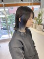 インナーブルー 切りっぱなしボブ 外はねボブ インナーカラー