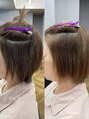 髪質やダメージのレベルに合わせた薬剤選定、ダメージを最小限に抑えるために1人1人にあった処理剤などをご提案しています。『縮毛矯正』髪のダメージに合わせた薬剤選定 栄養補給の処理剤を使いしっかりした縮毛矯正をします。