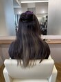 髪質やダメージのレベルに合わせた薬剤選定、ダメージを最小限に抑えるために1人1人にあった処理剤などをご提案しています。『縮毛矯正』髪のダメージに合わせた薬剤選定 栄養補給の処理剤を使いしっかりした縮毛矯正をします。
