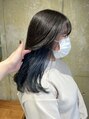インナーカラー×ブルー!インナーのブルーはブリーチ2回~の色味になります!当店はケアブリーチを使用しているので、よりダメージレスにデザインカラーを楽しんでいただけます!ベースの色味はグレーアッシュにしているので透明感があり、重く見えません◎