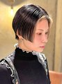 ラインを効かせたハンサムショート。ブリーチは前回入れたのを活かしています。ブリーチ部分の根本が伸びればブリーチリタッチして活かすことも、逆に暗く染めてベース部分と馴染ませる事も可能です。ブリーチ部分の色を変えるだけも可能です。
