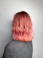 ピンク☆バレイヤージュブリーチ2回でできる、ピンクからピンクのグラデーションが可愛いカラー。カットは切りっぱなしの外ハネにしやすいミディアムスタイル。