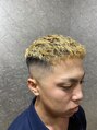 サイドとバックはフェードカットでトップは少し長めに残してアイロンパーマをかけました!ブリーチ毛ですが知識と経験を活かしこの仕上がりです!僕にお任せ下さい^^直毛の方でもアイパーをするだけで簡単にきまります^^