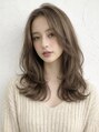 ブリーチを使わずに、柔らかく透けるような質感を叶える透明感カラー。赤みを抑えたベージュブラウンアッシュをベースに、レイヤーを入れることで軽さと動きを♪ダメージを最小限に抑えながら、色落ちまで綺麗に楽しめる大人女性向けヘアです。