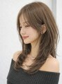 顔周りに動きをつけた韓国風くびれレイヤー。柔らかいベージュカラーで透明感とツヤをプラスし、重く見えない大人可愛い印象に。巻きすぎなくても決まる再現性の高さが人気のスタイルです。