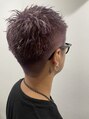 ベリーショートと寒色ハイトーンカラー!ここで紫や青単品にすると、イメージに偏りが出てしまうのでワインレッド系を使って、お客様のイメージに合わせて仕上げております!