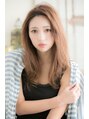 気張りすぎない脱力ウェーブで女らしく、前髪のS字ラインで更に小顔に。大き目ロッドで平巻きしランダムな動きをオン。カラーは明るいグレージュ