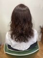 根元部分にはパーマがかからないように中間部分からスパイラル巻きで普段はコテなど使ってカールを出すのですが、かけたては巻かずにスタイリング剤仕上げでもアリなスタイルです。