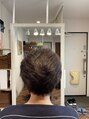 多毛、カラーでの傷み毛(シャリシャリ)で髪が膨張してしまい収まりが悪いスタイルを、毛量をできる限り少なくし、地毛の癖毛が綺麗にでるようにカットしました