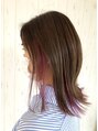 上の部分は透明感のナチュラルベージュ。インナーカラー 部分には一度ブリーチをしてから、パープルピンクで大人可愛いカラー!