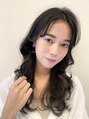 ゆったりウェーブが可愛いゆるふわロングスタイル。顔周りにレイヤーを入れてひし形シルエットにしているので小顔効果◎伸ばし中の前髪はサイドに繋げて流しやすく。カラーはオリーブグレーで暗髪でも透明感を♪