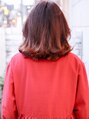 全体のバランスや骨格を見ながら前髪とサイドがつながるようレイヤーを入れ、毛先に動きが出るようにスライドカットします。バックはレイヤーを入れず重さを残しています。レイヤーの高さで印象が変わるのであなたにあった髪型をアドバイスさせてください。