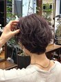 癖毛を活かして後ろにボリュームを作ったショートスタイルです。耳にかけてもスッキリ襟足はタイトにコンパクトに収まる。ピンクをアクセントにしたピンクブラウンで髪も綺麗に艶っぽく見える周りに変化をつけるスタイルです。