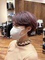 耳にかけれるショートで後ろに簡単に丸みが出るようにカットしています。綺麗な毛流れが髪を綺麗に見せてくれる大人っぽく見えるピンクブラウンのカラーリングとの相性もバッチリです。