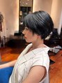 襟足をタイトに、更にレイヤーを入れてカットした、カジュアルショート。崩した少しカジュアルな印象に、前髪の短さが印象を朗らかにしてくれ黒髪にも似合う、カジュアルかつ上品なビュートリアムの得意とするヘアデザインです。