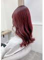 ビビットなアリエルみたいなレディッシュピンクに赤系は1回のブリーチでもしっかり入りやすいです。ブリーチしていない髪でしたら一度ブリーチしてベージュ系を楽しんで、次回赤系にするとどちらも影響なく楽しめます。