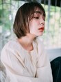 ナチュラルなショートボブスタイル。あごラインでボブを作ることで小顔に見えコンパクトな仕上がりになります。前髪には重みを出さず、カラーも赤みの少ないベージュ系にすることで顔まわりが明るくスッキリとした印象になります。【ボブ/ハイライト/パーマ】