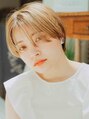 コンパクトなミニショート。前髪は長めに、伸ばしかけの方も、あえて頬骨くらいの長さでカットしてもよしの流行りのうざバング。ストレートにして束感出して散らすのが今風。カラーリングは細かいハイライトが入った透明感のあるカラーリング。【前髪カット】