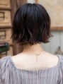 首半分くらいの長さにカットしレイヤーのないスタイル。しっかり毛量をへらしパーマをかけることで、動きのあるスタイルに。基本外ハネになるようにかける為お家でもラクに再現が可能。バングもワンカール。カラーも同時がお勧め。【ボブ/パーマ/波巻き】