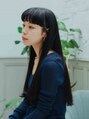 黒髪ロングスタイルにストレートにオン眉にしたモード系スタイルです。シンプルで大人っぽさと雰囲気のあるスタイルです。前髪の幅を少し広めにとりぱっつんスタイルにすることで小顔効果にも◎縦長になり過ぎないようバランスをとっています。【前髪カット】