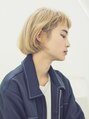 ハイトーンベージュのショートボブスタイルです!全体的に重めですが、前髪を眉毛上に切ることと、ハイトーンにすることで明るい印象を与えてくれます。ストレートアイロンだけで簡単に来まするタイルなのでオススメです!【ブリーチ/ダブルカラー/ボブ】