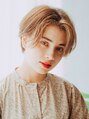 ボリュームの位置を少し高めでにカットし、襟足は刈り上げないぎりぎりで切ることによってかっこよさありつつ女性らしさも残したショートになります。ヘアカラーを明るくすることで軽さをだし、透明感のあるベージュで外国人のような雰囲気に。【ボブ/韓国】