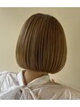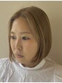 輪郭に沿った顎ラインのボブスタイルです。内に入る仕上げも、外ハネも、くくってアレンジも楽しめる万能スタイルです。カラーはブリーチをしてからミルクティーカラーをオンしました。