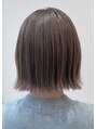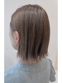 カットのラインはパツッと見えるようなラインにしながら量感は減らしてタイトにセットできるよう重軽ヘアにしました。フロントは長めに残して後ろやサイドに流す事でハンサムな印象になりました。カラーはルーセントグレージュで透明感のあるお色です。