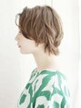 かきあげた前髪がポイントのナチュラルワイルドショートです。フワくしゅのカールが可愛らしい雰囲気も出すアレンジショートです。