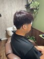 - 襟足作り込むサイドツーブロック、赤系カラー